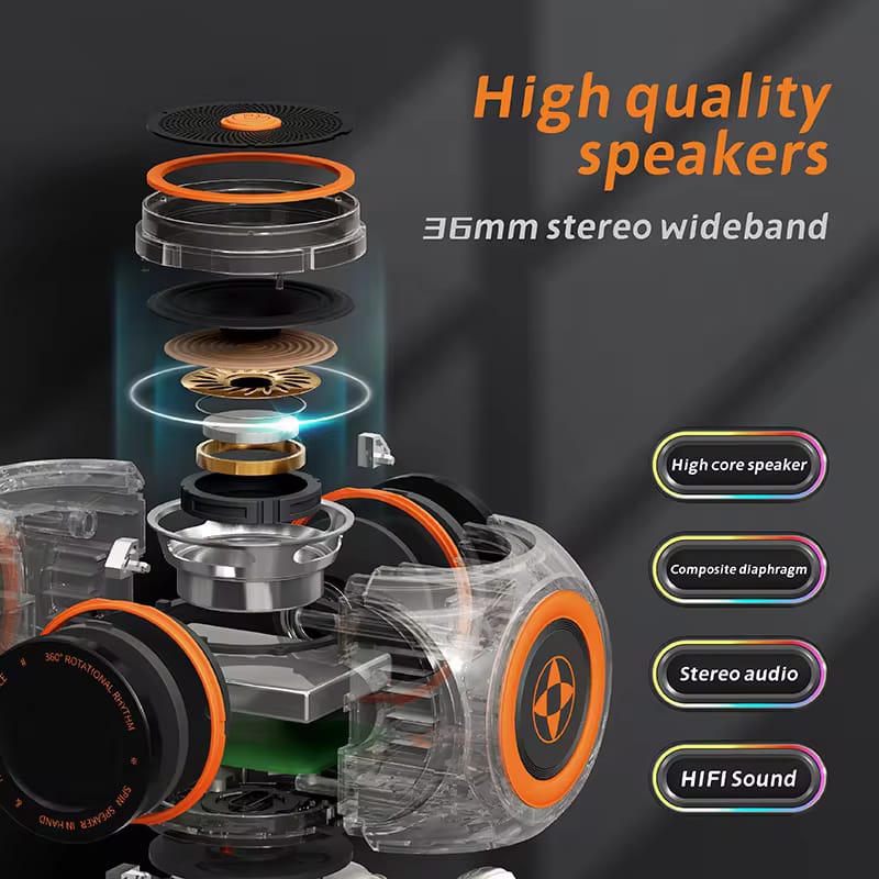 🔊 مكبر الصوت الدوّار بتصميم مبتكر – صغير الحجم، قوي الأداء
